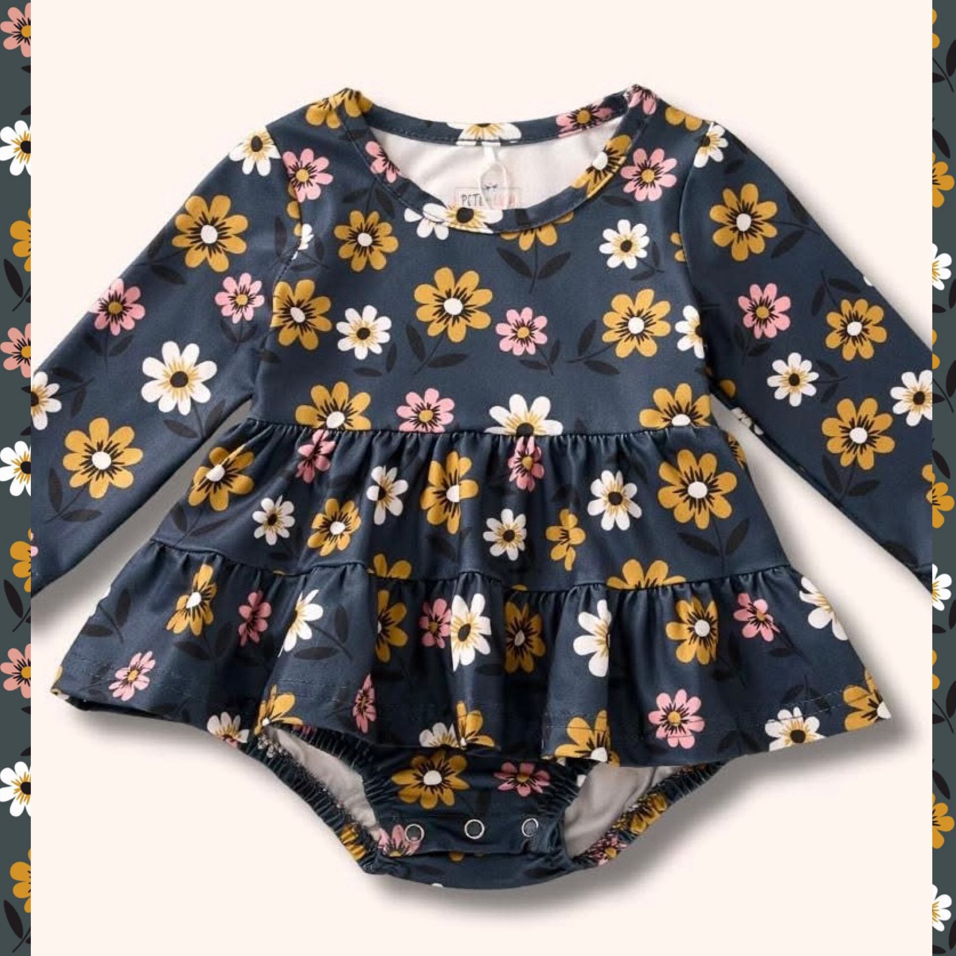 Bright, comfy, and made for adventure! This sweet floral romper adds a splash of charm, it's perfect for crawling, climbing, and all-day play. Soft, breathable fabrics keep your little one comfy, while the cheerful colors make every day feel like sunshine. Perfect for playdates, park days, or picture-perfect moments.