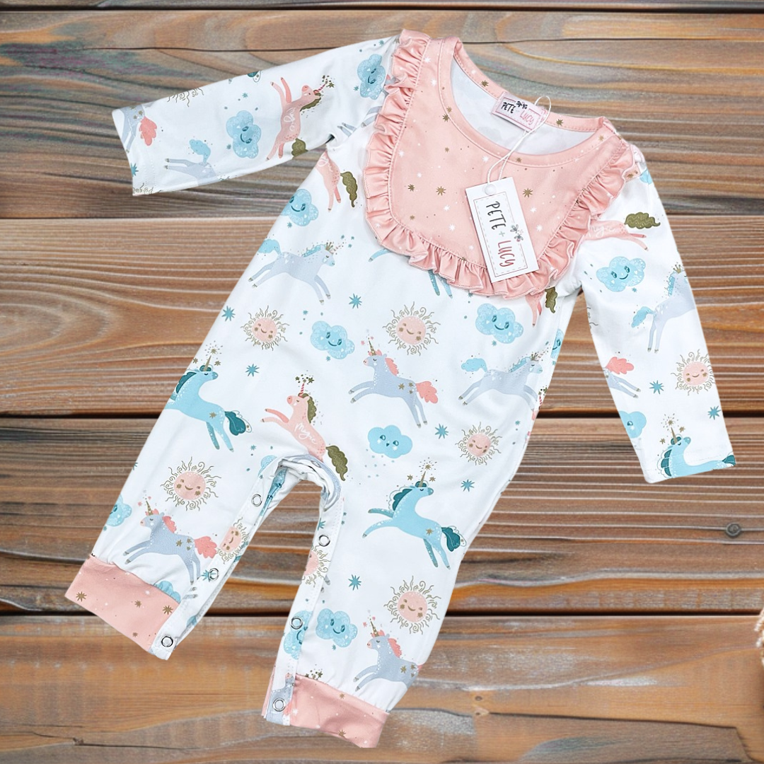 Inspired by stardust and soft dreams, the Magical Sky romper wraps your little one in cozy comfort and celestial charm. Made with buttery-soft fabric and sprinkled with sweet, sky-inspired details, it’s perfect for playtime, naptime, and twinkly photo moments.